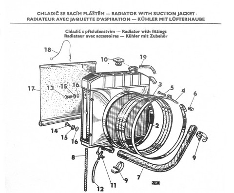 -> vlasmi: Dnes teprve čtu v klidu a dodávám - chladič jde kvůli kruhu kolem vetilátoru a té gumě naklopit tak akorát, aby šel vyviklat ven směrem nahoru. Pokud není guma zánovní, může jí při soukání chladiče poměrně ostrý okraj sacího pláště rozříznout. Spona kolem gumy bývá zejména na spodku sacího pláště doslova jako přilepená, hrozí tedy roztržení při odhrnování. Altenativně jde odšroubovat sací plášť (4xM6) od chladiče a chladič vytáhnout holý, ale je to ještě větší opruz, než soukat roletku otvorem v blatníku.