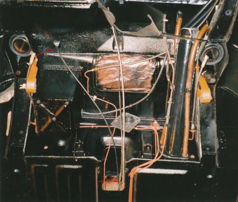 V madle toho jezdce je pocínovaným koncem chycený lanko, který hned mizí v tunelu a vede jím zcela volně až do tunelový záslepky. U MB není záslepka držená pacičkama, jako u stovek, ale jsou tam čtyři šroubky snad M6, možná M7. Jeden z nich je atyp průchozí stavitelný a u něj začíná bowden (já dávám CéÓčkový). Ten pak zavede lanko otvorem bez ničeho do meziprostoru za sedačkama a dál až k místu, kde je u stovky ta klíčová dírka pro řetízek.