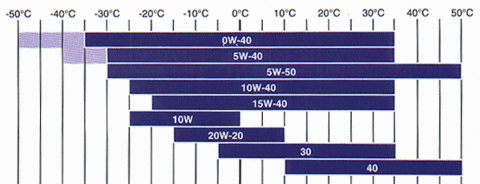 -> DuriQ: Doporučené viskozitní třídy SAE motorových olejů podle vnějších teplot (°C)