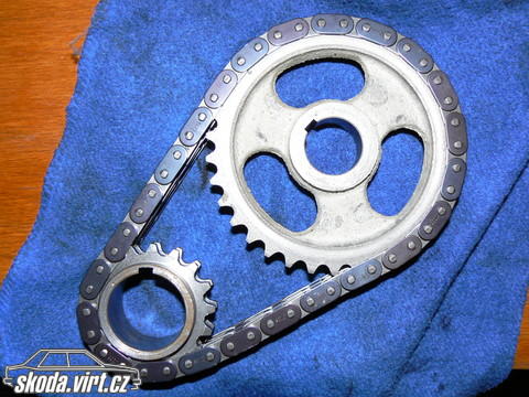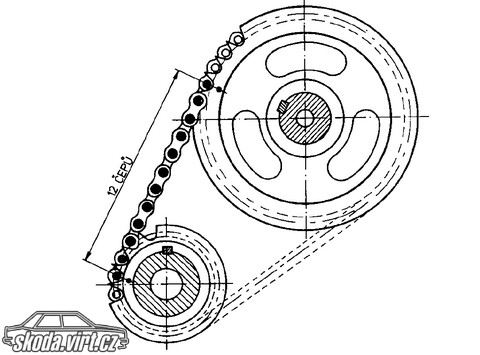 -> Kuladmin: když se podíváš na velké rozvodové kolo, tak vidíš že poloha tečky na kole a otvoru pro klinek vačky je pořád stejná, uhel natočení vačky záleží pouze na počtu čepů řetezu mezi značkama ..