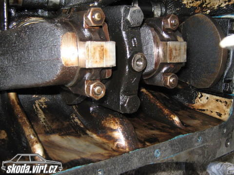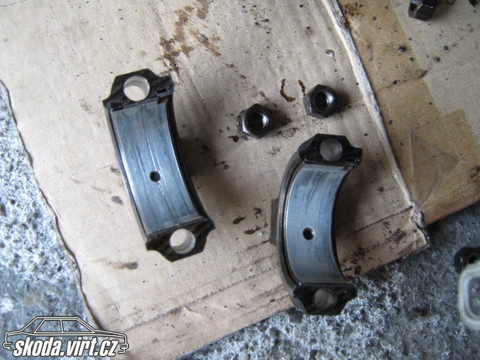 oniční ložiska ... pokud vypadají takhle ojniční, nebudou na tom líp ani hlavní, protože mazací tlak jde od hlavních k ojničním .. pro rychlou orientaci při koupi motoru sundat víka ojnic a je hned jasno ..
