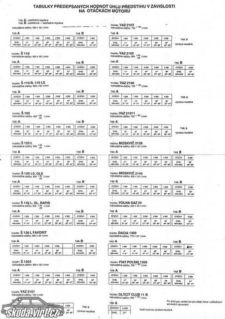 Nemá někdo tyhle tabulky průběhu předstihu pro různé otáčky a různé motory (rozdělovače) někdo naskenované? Popř. nejsou někde na netu? Jedná se mi o motory škoda. Zrovna včera jsem je potřeboval a nejsou..