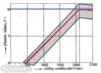 -> COL: stroboskopem to meril kamos..... nastavil rysku na volnobeh na nulu a prestih byl 15 stupnu coz odpovidalo, a potom se zvysily otacky na 2000 a na stroboskopu bylo 26 potom na 3 a 39 a na 4 a 52,1......s ryskou se pri zvysovani otacek nic nedelalo... zajímavé že když ty hodnoty podelím čtyřma a odečtu základ tak dostávám přesně ten graf regulace jaký by to měl být....