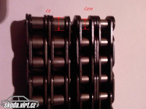 zdravim mam dvoje rozvodove, retaze jedno nove kolo na vacku a dva kola na kluku (zdroj boli zasoby stareho pana v garazi) .. problem je vid obrazok (neviemm ako to popisat) no retaze su rozdielne a chcel by som vediet ako to rozpoznam ci sa jedna o 120tkove rozvody alebo nie. jedna retaz ma na kazdom clanku oznacenie čz a druha ma na kazdom druhom clanku oznacenie čz35... dufam ze je jasne o co mi ide