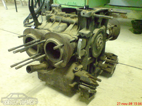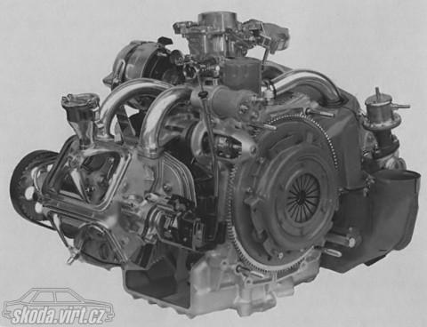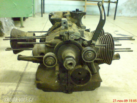 skusim aj tu.....dostal sa mi do ruk takyto motor, vzduchom chladeny 4 valec boxer s vrtanim okolo 75mm, ma dve napinacie kladky, olejovy filter sa srobuje zhora, zotrvacnik na 6 srobov.....