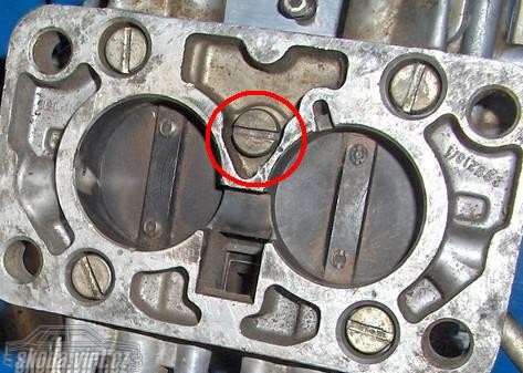 Ten šroub s jehlou je tam kvůli regulaci průtoku směsi(bohatosti) - nejde o to uzavřít ten otvor, ale postupně přiškrtit průtok. Můžeš klidně použit šroub bohatosti z jednokomoráku Jikov 32 BS - některé mají naprosto stejný mosazný, některé malinko odlišný železný(fungovat bude taky)