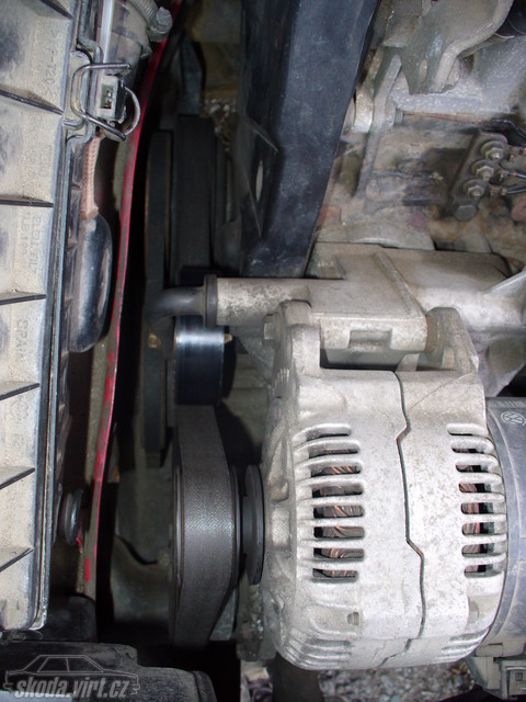 Jestli z toho neco vyctes, tak takhle to mam ja. Mam tam dva remeny - jedne klinovej a druhej drazkovej. Drazkovej je - klika, altik, klima. A klinovej je klika, servo, voda. Tedy alespon myslim. Dam sem fotku, ale nevim jestli z toho bude neco videt - asi spis ne.