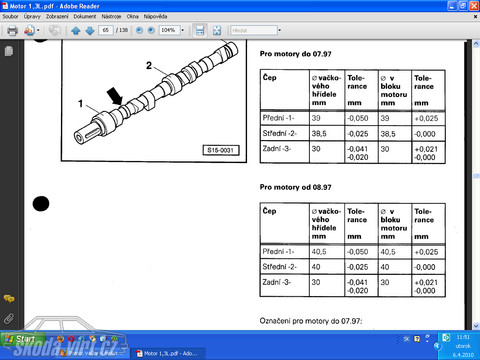 -> Schejby: áno motory 100-felícia -7/97 má vačka malé uloženie , od 8/97 hore má uloženie veľké a súčasne má kľukový hriadeľ pri rozvodoch s priemerom 30mm namiesto 32mm ako ostatné motory , existujú aj vačky továrenské u večším uložením ale iným ako má felícia ak bude záujem môžem zistiť aj presné čísla