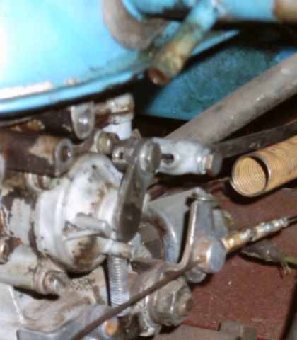 Jasně - šroubek pro upevnění bowdenu - spousta lidí ho utahuje, jako kdyby jeho pomocí držel pohromadě motor :)