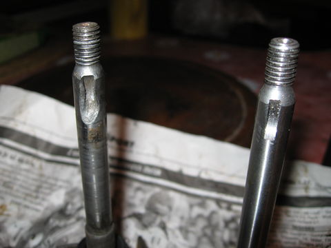 Tak to si do toho musel pěkně mlátit, když si rozklepal konec tý hřídelky. Ale v tom případě stačilo jen to trochu zbrousit a vyříznout kousek závitu.