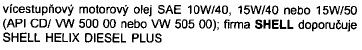 -> Fén: jak pise U-geen do starsich dieselu kdyz das 5W je to docela ridky a muze to zrat proto bych byl spis pro 10W-40 resp. v lete desistkou nic nezkazis na zimu se nam zase vic osvedcila petka ale je pravda ze jezdime spis dlouhy trate... rozhoduje i znacka a osobne dam po zkusenosti na doporuceni vyrobce