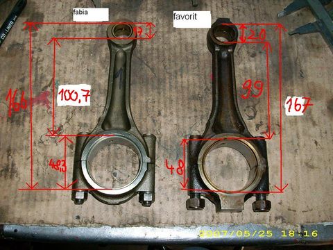 -> Pavel Korbelář: Tu ojnici z felicie musíš na klikovým čepu s nasazenou pánví zužit aby to sedlo na fabkovou kliku,nevim o kolik,musíš si to změřit,nebo udělat podle fabiové ojnice.