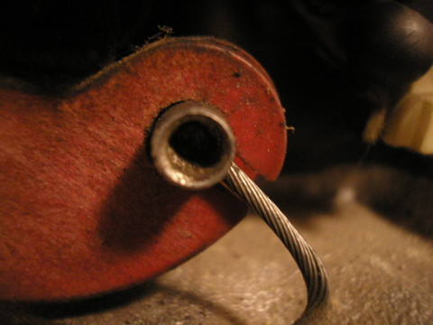 nu chlapci potřeboval bych upřesnit čím spojit ocelové lanko a váleček viz foto níže.