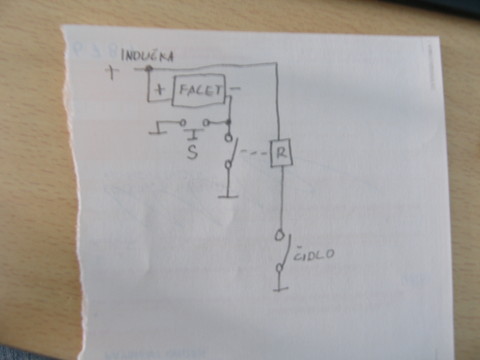 indučka je přívod napájení do indučky(kdosi tady říkal kolík číslo 15) ,facet je facet, S je tlačítko někde na palubovce pro načerpání paliva do karburátoru před nakopnutím motoru , R je rele s ROZPÍNACÍM kontaktem , čidlo je čidlo oleje.