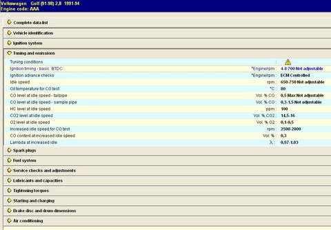 2.9 V6 ma 6stup pri 700rpm, ale napriklad 2.8V6 pre 4*4 ma 12+-3 pri 680rpm ale to su motory od 96 po 2004, corado ma tiez 4-8stup zaklad pri 700rpm...