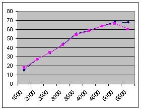 a jeste posledni graf ktery me cely privedl k tomu ze je neco spatne.. graf vykonu vypocitany z udaju o momentu Cimbu.. me prislo divne ze ten vykon neklesa (tak jak by mel) na konci kde uz rapidne klesa kroutici moment.. tady je krasne videt ze cela krivka celkem spolehlive kopiruje Cimbu udaje ale ten konec v nejvetsich otackach kde uz skutecny vykon klesa je nadhodnocen a je tam pridano aby to asi lepe vypadalo-)