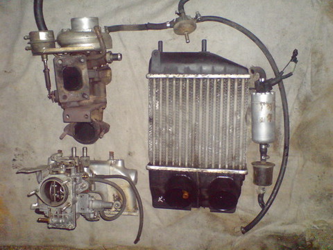 2krát motor Škoda 120LS. Jeden seriový, soutěžní mam v autě. Plno nářadí(taťka je soustružník).